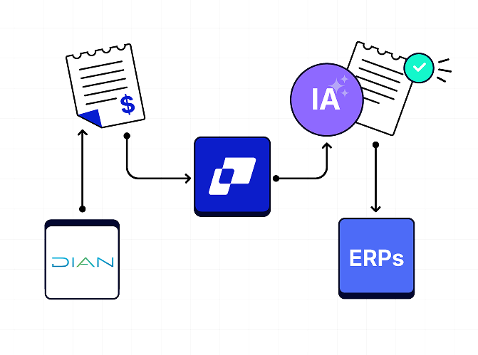- Flujo de causación de documentos: Conecta tu ERP con la DIAN y automatiza la causación de facturas, cuentas de cobro y gastos para mantener tu contabilidad actualizada.
