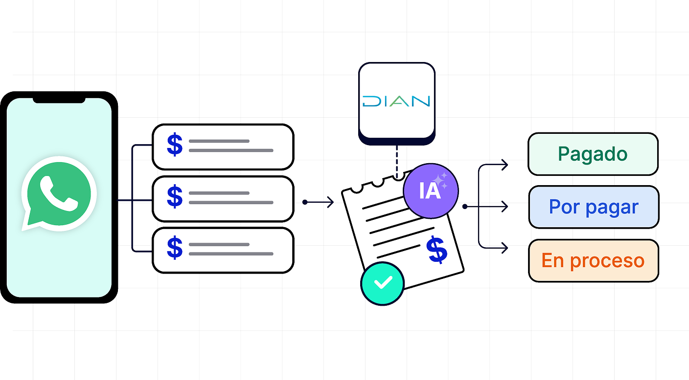 - Flujo de devoluciones y reembolsos: Recibe gastos por WhatsApp, organízalos por proyectos y crúzalos con facturas electrónicas para optimizar tus reembolsos.