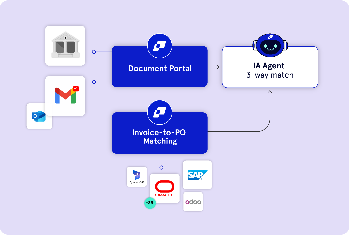- Assistants: Recommend actions that require human validation. Example: suggesting reconciliations between invoices and purchase orders.