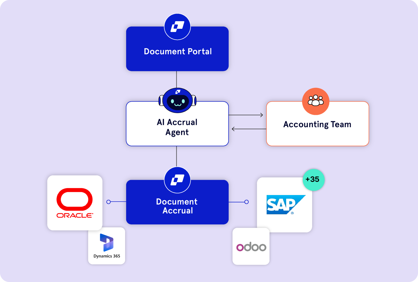 Our AI Accrual Agent processes and automatically records your documents in the ERP. When exceptions occur, it requests your assistance and learns from each interaction to improve its execution. This way, we keep your accounting up to date, eliminate manual data entry, and strengthen your operational intelligence.